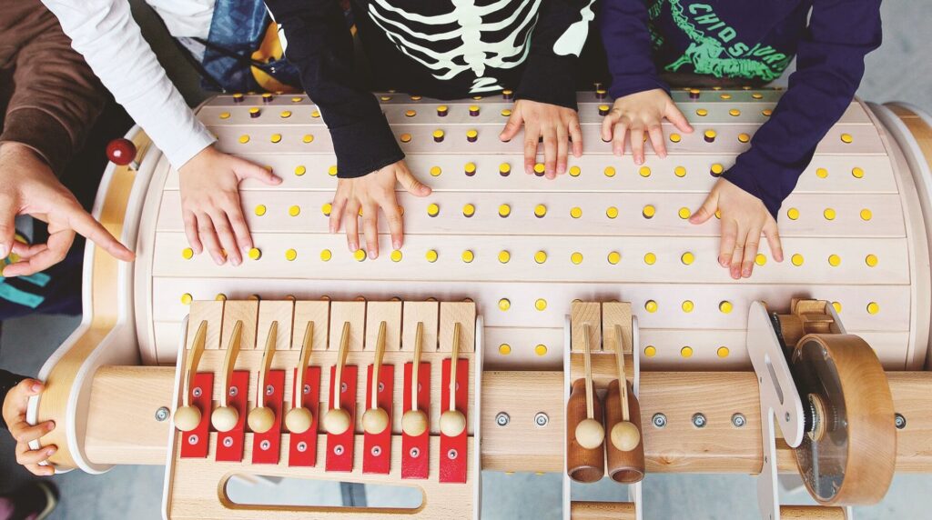 Podczas warsztatów dzieci mają okazję pracować z Musiconem – nowoczesnym, interaktywnym narzędziem edukacyjnym, które łączy muzykę, ruch, kreatywność oraz naukę logicznego myślenia i programowania.